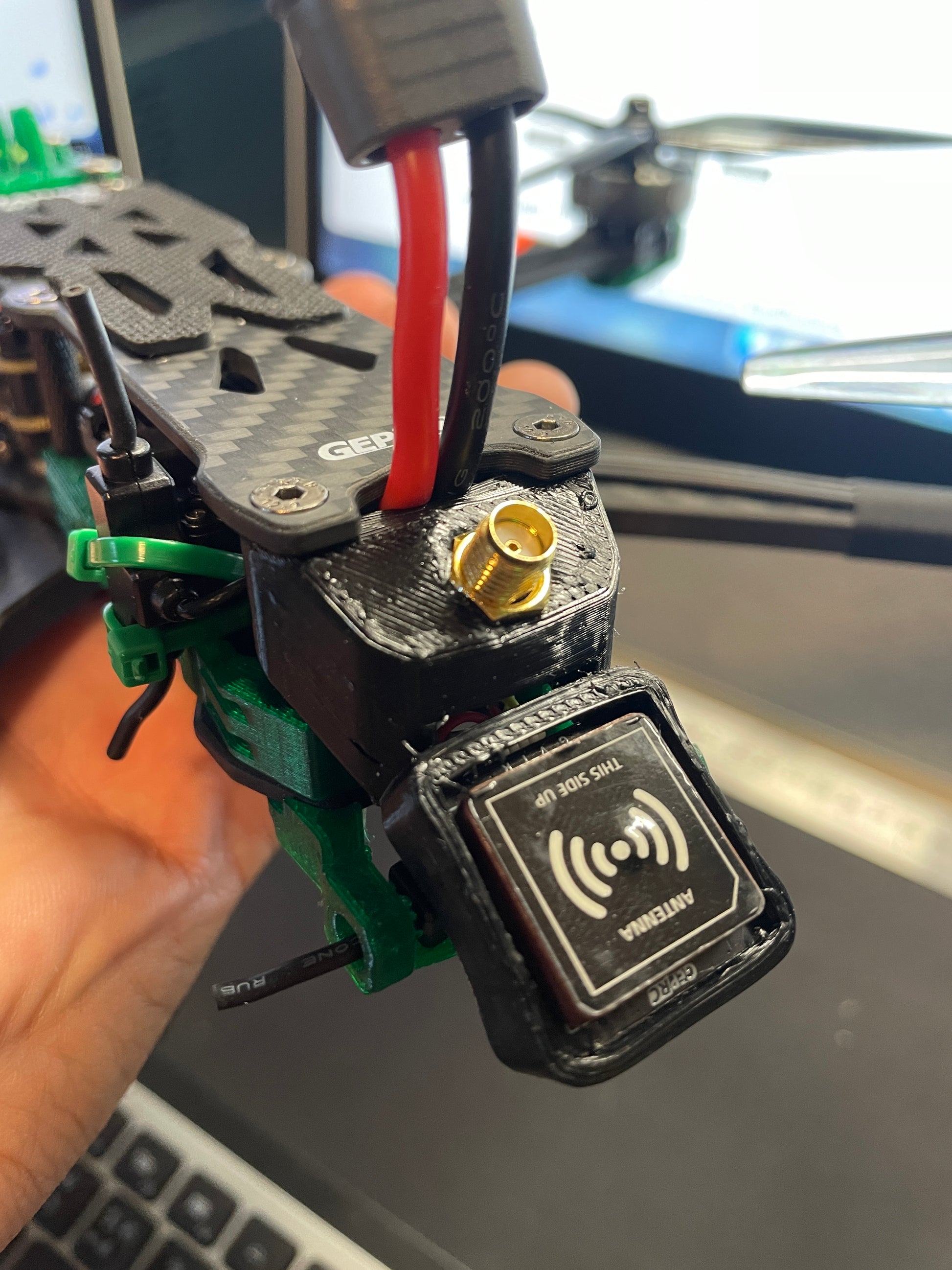 A mount for GEPRC M8 GPS and a regular SMA connector for the Mark5. I believe other GPS like the BN220 will fit but it hasn't been tested. Everything sit very tight but it works as this model is printed in TPU.