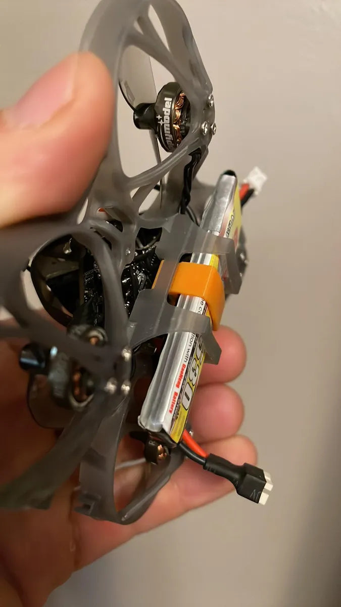 This part, printed in TPU, will help you hold 1S batteries in place under the drone.