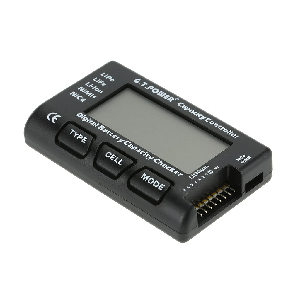 Digital Battery Capacity Checker can be used to check the battery voltage of Lithium batteries including Lipo, LiFe, Li-Ion, as well as NiMH and NiCd batteries. The checker will measure the voltage of both individual cells and full battery voltage, and can also indicate the highest voltage cell, lowest voltage cell and difference in between, as well as display the percentage of battery capacity remaining.