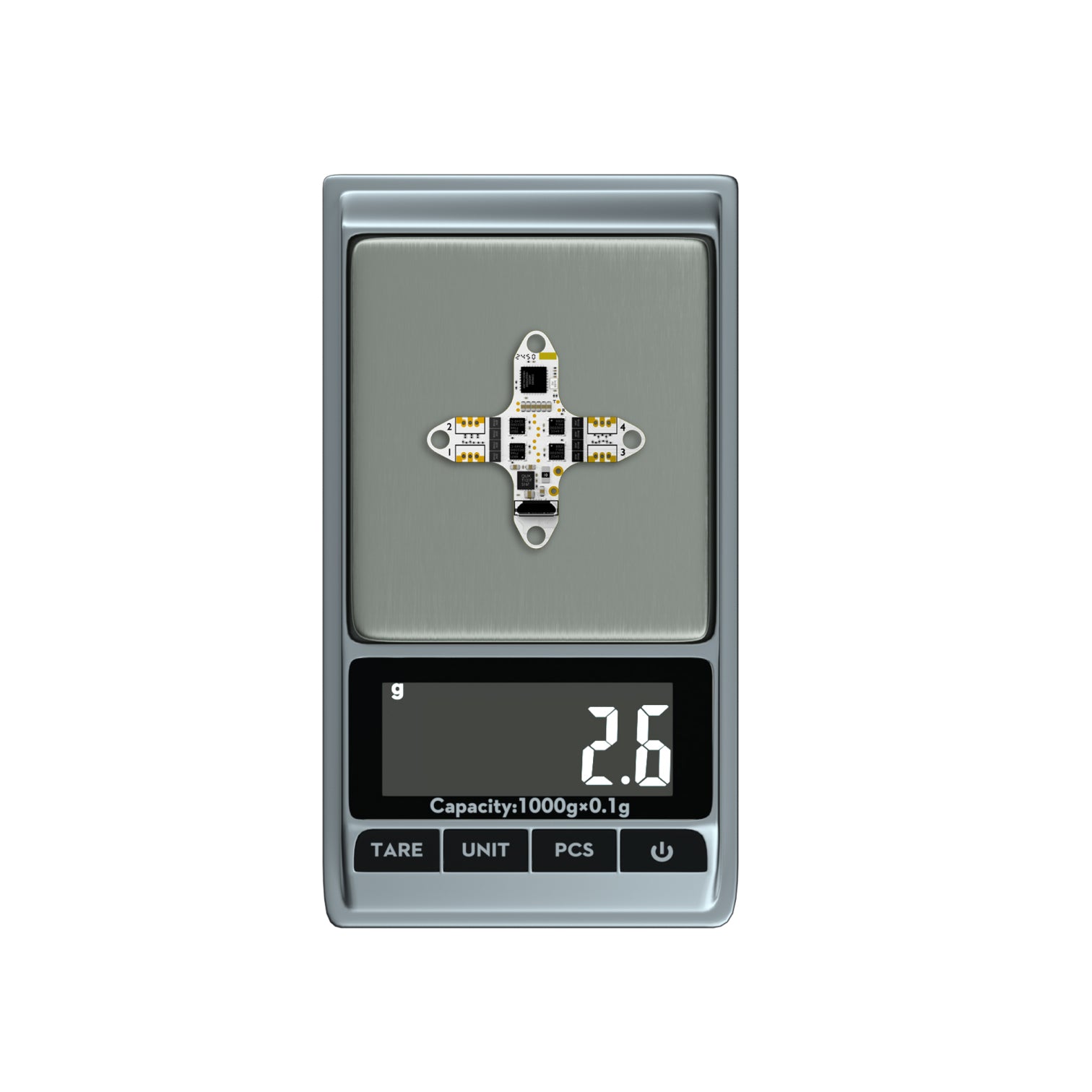 Built around the STM32F405 BGA MCU, this all-in-one (AIO) board delivers superior computational power while maintaining an exceptionally lightweight design of 2.6g (excluding motor connectors ). Its cross-shaped PCB stacking ensures seamless compatibility with all 1S frame kits, making it ideal for pilots seeking precision, reliability, and adaptability in micro HD builds.