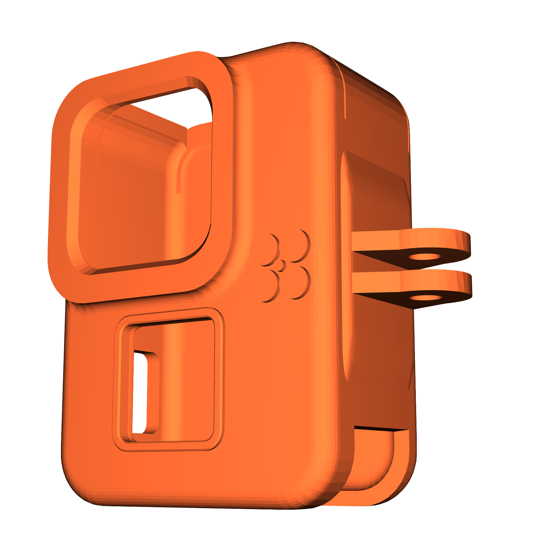 TPU part intended to protect a GoPro 8 with adjustable angle and Nordfpv logo