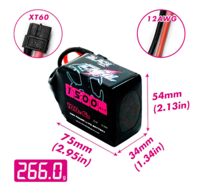 - Voltage: 22.2V / 6-Cell / 6S1P